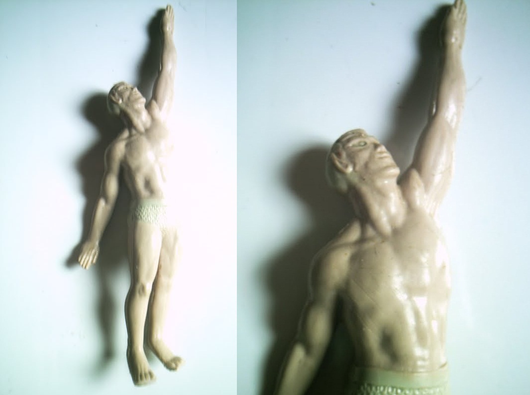 Segundo alguns colecionadores, essa figura teria sido esculpida usando como base à figura de um troféu de natação.